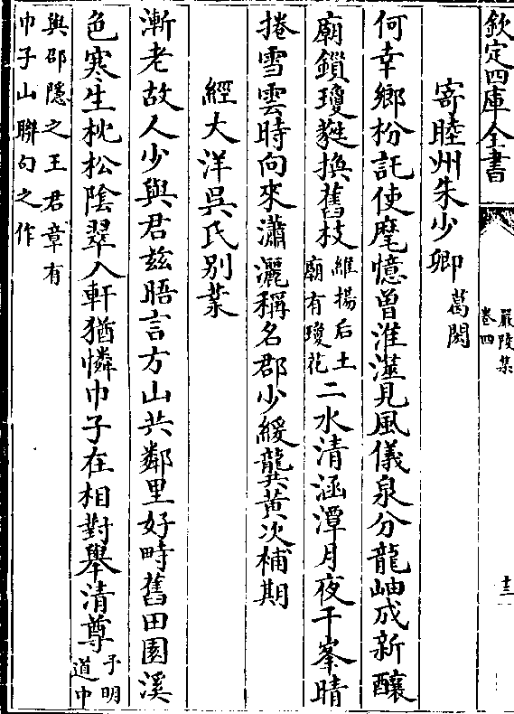 寄睦州朱少卿(葛闳/)何幸乡枌托使麾忆曾淮澨见风仪泉分龙岫成新酿