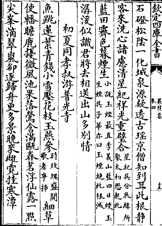 石磴松阴一化城泉源疑透古瑶京僧知到耳此根静客来洗心诸虑清星纪祥光重璧合(星纪吴分辰纬所/聚太初历起此)