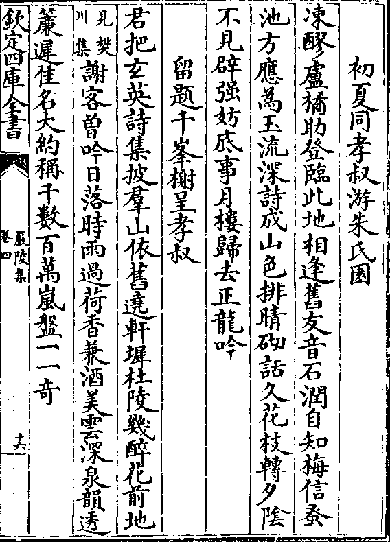 初夏同孝叔游朱氏园冻醪卢橘助登临此地相逢旧友音石润自知梅信蚤