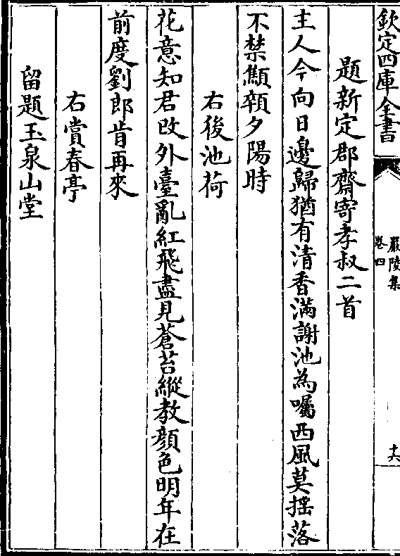 题新定郡斋寄孝叔二首主人今向日边归犹有清香满谢池为嘱西风莫摇落