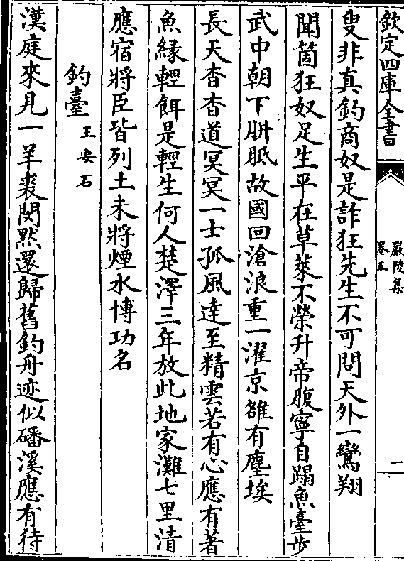 叟非真钓商奴是诈狂先生不可问天外一鸾翔闻个狂奴足生平在草莱不荣升帝腹宁自蹋鱼台步