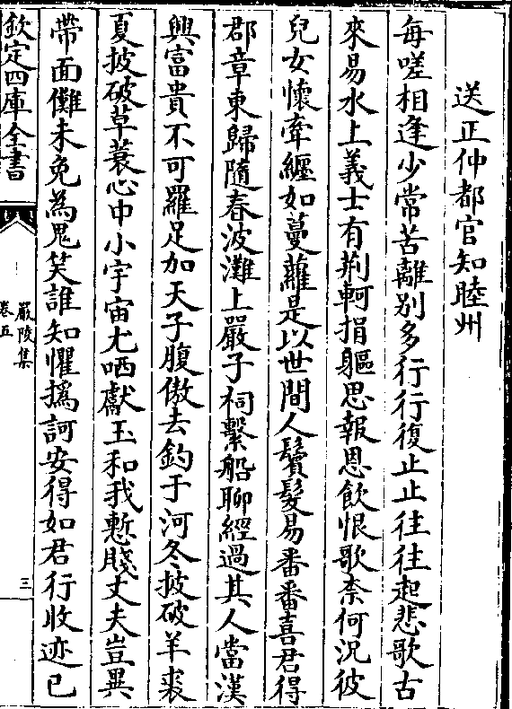 送正仲都官知睦州每嗟相逢少常苦离别多行行复止止往往起悲歌古