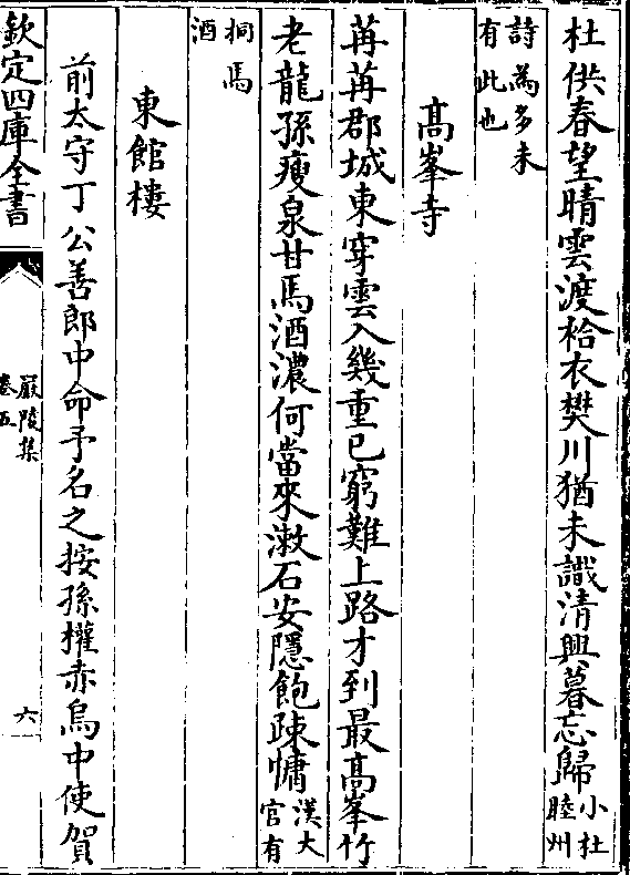 鲙严陵濑评泉陆羽经欢馀不尽醉鼓角限重扃