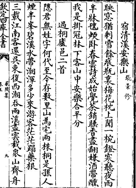 宿清溪安乐山(张景修/)映匆犹剩雪馀痕瓶里梅花枕上闻一碗镫寒听夜雨
