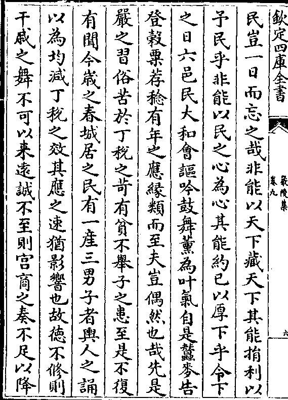 民岂一日而忘之哉非能以天下藏天下其能捐利以予民乎非能以民之心为心其能约已以厚下乎令下
