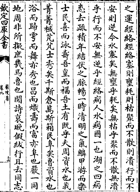 之运经络经络塞则壅耗则枯聚而不散则溃行而不安则逆今水塞矣无壅乎耗矣无枯乎聚而不散无溃