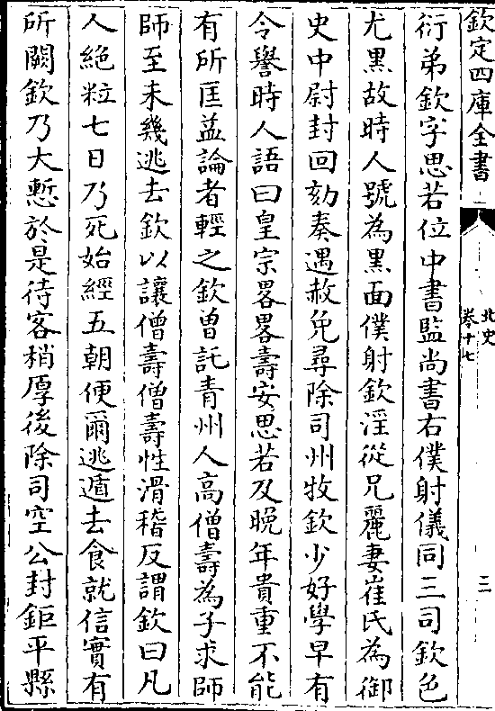 衍弟钦字思若位中书监尚书右仆射仪同三司钦色