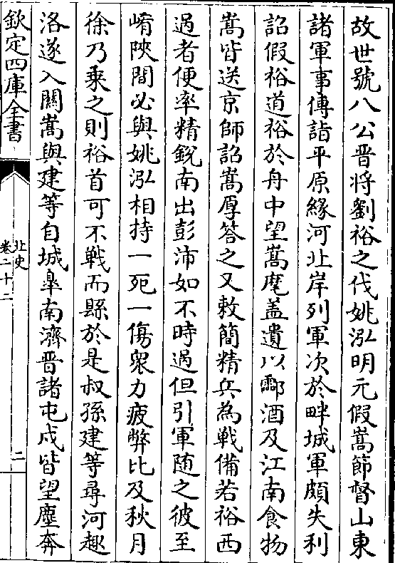 故世号八公晋将刘裕之伐姚泓明元假嵩节督山东诸军事传诣平原缘河北岸列军次于畔城军颇失利