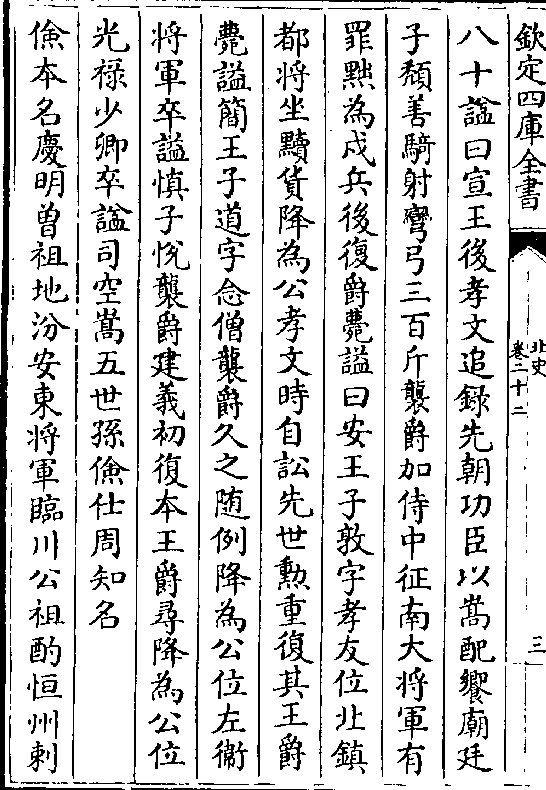 子颓善骑射弯弓三百斤袭爵加侍中征南大将军有罪黜为戍兵后复爵薨谥曰安王子敦字孝友位北镇