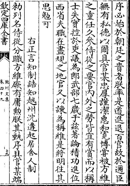 敕列名侍从分职方维厥有庸勋朕其甄序具官某端