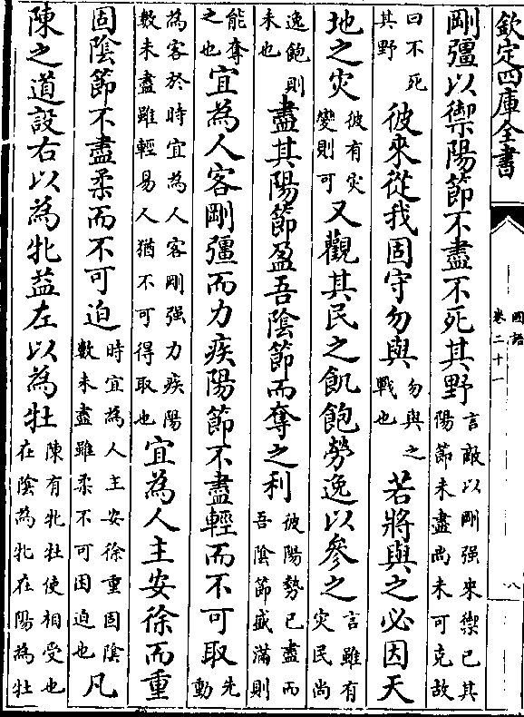 刚彊以御阳节不尽不死其野(言敌以刚强来御已其/阳节未尽尚未可克故)(曰不死/其野)彼来从我固守勿与(勿与之/战也)若将与之必因天