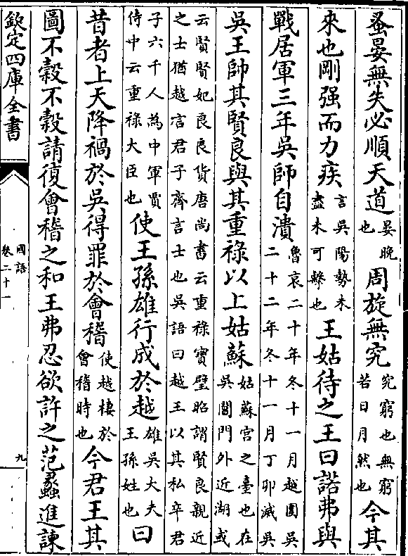 蚤晏无失必顺天道(晏晚/也)周旋无究(究穷也无穷/若日月然也)今其来也刚强而力疾(言吴阳势未/尽未可击也)王姑待之王曰诺弗与