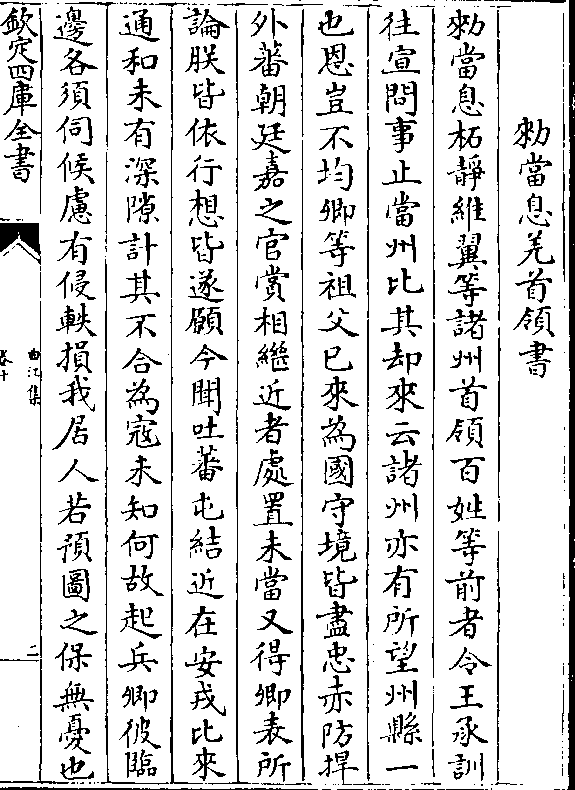 敕当息羌首领书敕当息柘静维翼等诸州首领百姓等前者令王承训