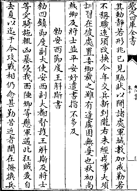 其动静若形兆巳见驰状以闻诸处军城数加戒勒若不称职速须改换今年交兵新到陇右未经戎事大须