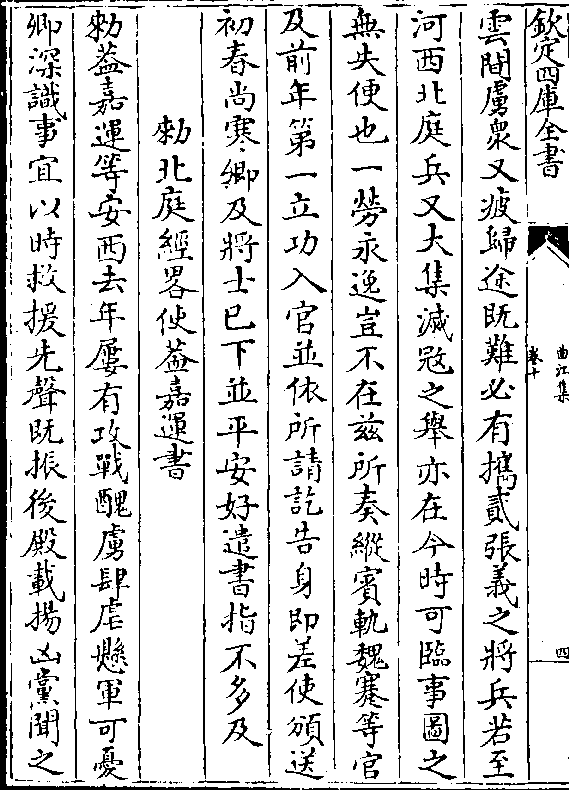 云间虏众又疲归途既难必有𢹂贰张义之将兵若至河西北庭兵又大集灭寇之举亦在今时可临事图之