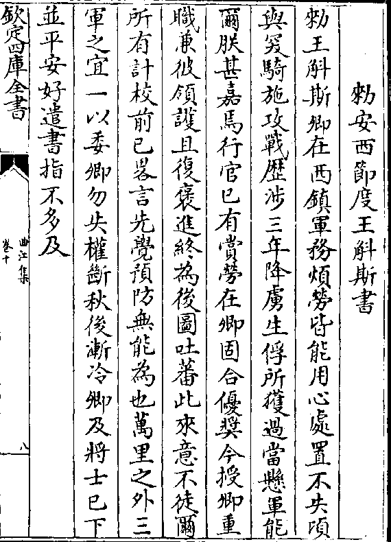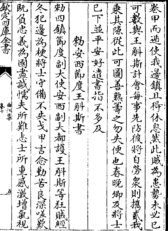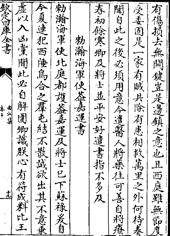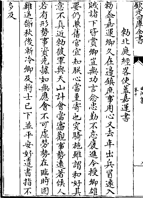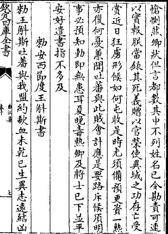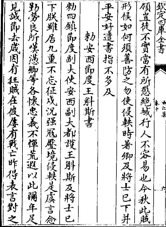 领岂徒不实当有所惩绝域行人不容易也今秋此贼形候如何须善防之勿使侵轶时暑卿及将士已下并