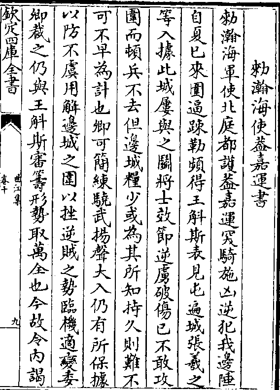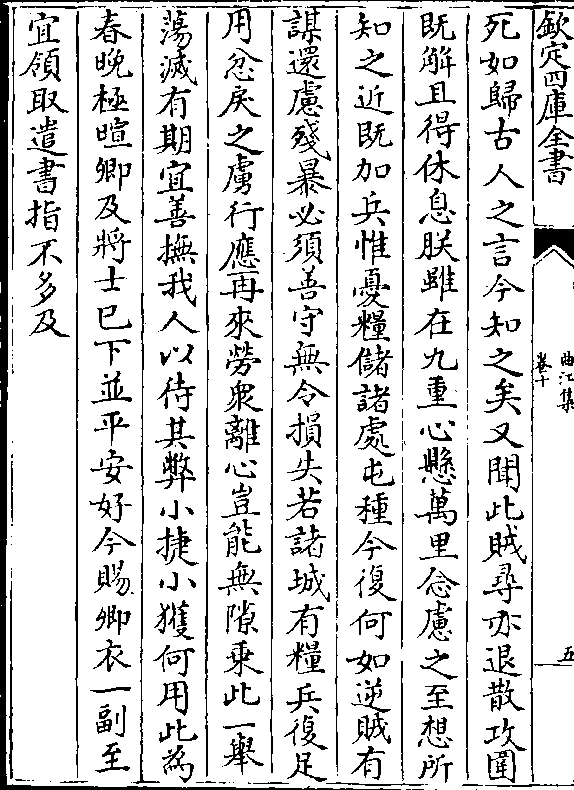 死如归古人之言今知之矣又闻此贼寻亦退散攻围既解且得休息朕虽在九重心悬万里念虑之至想所