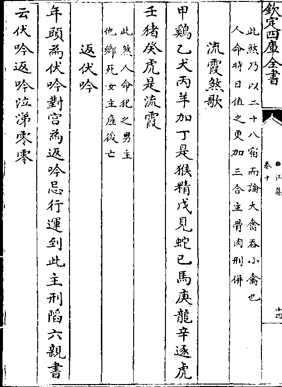 (此煞乃以二十八宿而论大禽吞小禽也/人命时日值之更加三合主骨肉刑并)流霞煞歌