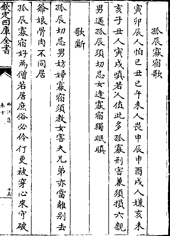 孤辰切忌男妨妇寡宿须教女害夫兄弟亦当离别去