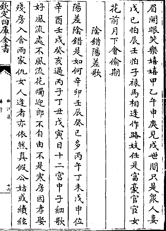 辛酉壬戌癸亥过丙子丁丑戊寅日十二宫中子细歌