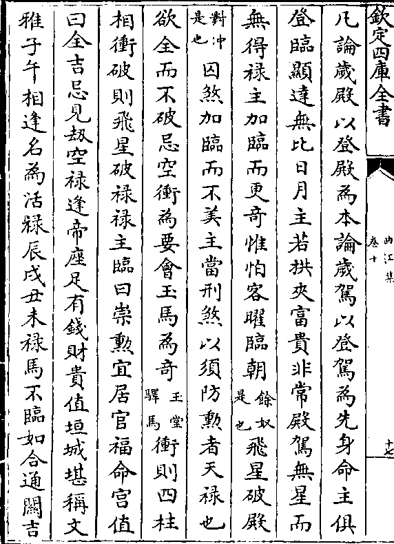凡论岁殿以登殿为本论岁驾以登驾为先身命主俱登临显达无比日月主若拱夹富贵非常殿驾无星而