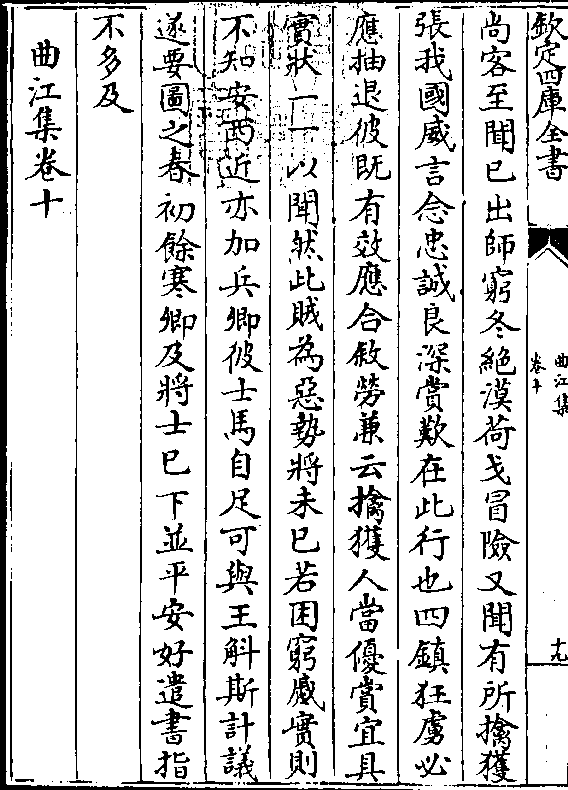 尚客至闻已出师穷冬绝漠荷戈冒险又闻有所擒获张我国威言念忠诚良深赏叹在此行也四镇狂虏必