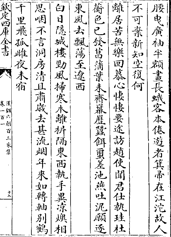 怅然不自怡端忧坐漠漠风急雁毛断冰坚马蹄落客子饥寒多江上衣装薄何当报恩罢驱车还北郭
