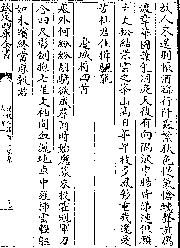白马黄金羁青骊紫丝鞚新知关山别故人河梁送置