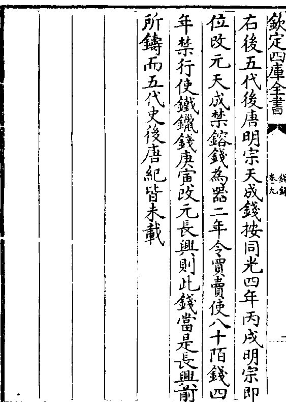 右后五代后唐明宗天成钱按同光四年丙戌明宗即位改元天成禁镕钱为器二年令买卖使八十陌钱四