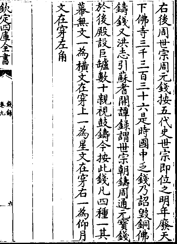 右后周世宗周元钱按五代史世宗即位之明年废天下佛寺三千三百三十六是时国中乏钱乃诏毁铜佛