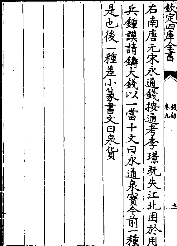 右南唐元宋永通钱按通考李璟既失江北困于用兵钟谟请铸大钱以一当十文曰永通泉宝今前一种