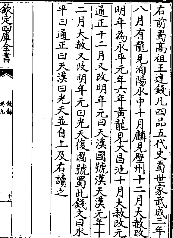 右前蜀高祖王建钱凡四品五代史蜀世家武成三年八月有龙见洵阳水中十月麟见壁州十二月大赦改