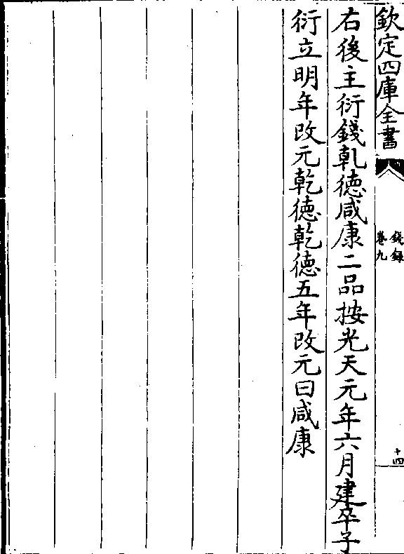 右后主衍钱乾德咸康二品按光天元年六月建卒子衍立明年改元乾德乾德五年改元曰咸康