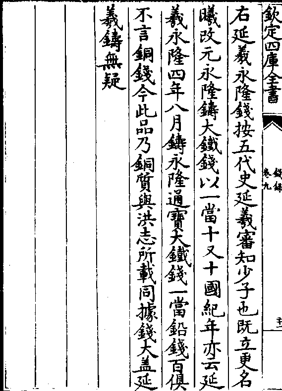 右延羲永隆钱按五代史延羲审知少子也既立更名曦改元永隆铸大铁钱以一当十又十国纪年亦云延