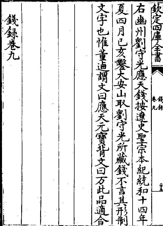 右幽州刘守光应天钱按辽史圣宗本纪统和十四年夏四月己亥凿大安山取刘守光所藏钱不言其形制