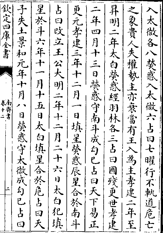 危徘徊玄枵之野则齐国有福厚为受庆之符今所记三辰七曜之变起建元讫于隆昌以续宋史建武世太
