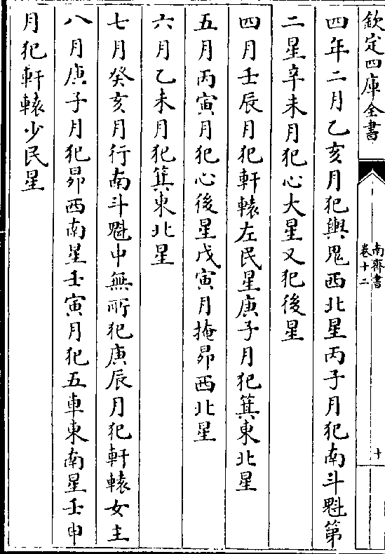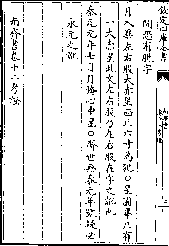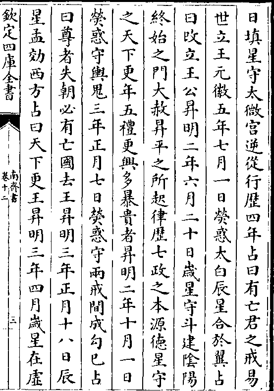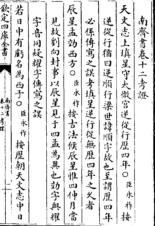南齐书卷十二考證天文志上填星守太微宫逆从行历四年○(臣永祚/)按