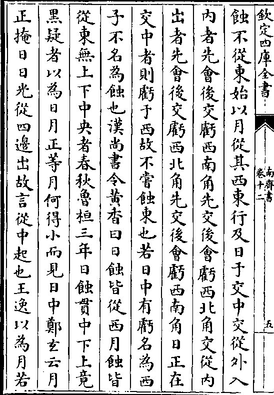 蚀不从东始以月从其西东行及日于交中交从外入内者先会后交亏西南角先交后会亏西北角交从内