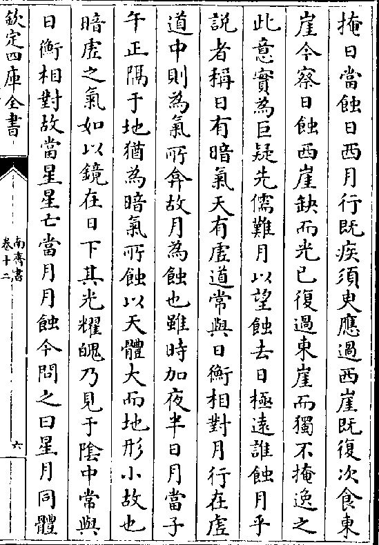 掩日当蚀日西月行既疾须臾应过西崖既复次食东崖今察日蚀西崖缺而光已复过东崖而独不掩逸之