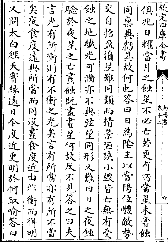 俱兆日耀当月之蚀星不必亡若更有所当星未尝蚀同禀异亏其故何也答曰日为阴主以当阳位体敌势