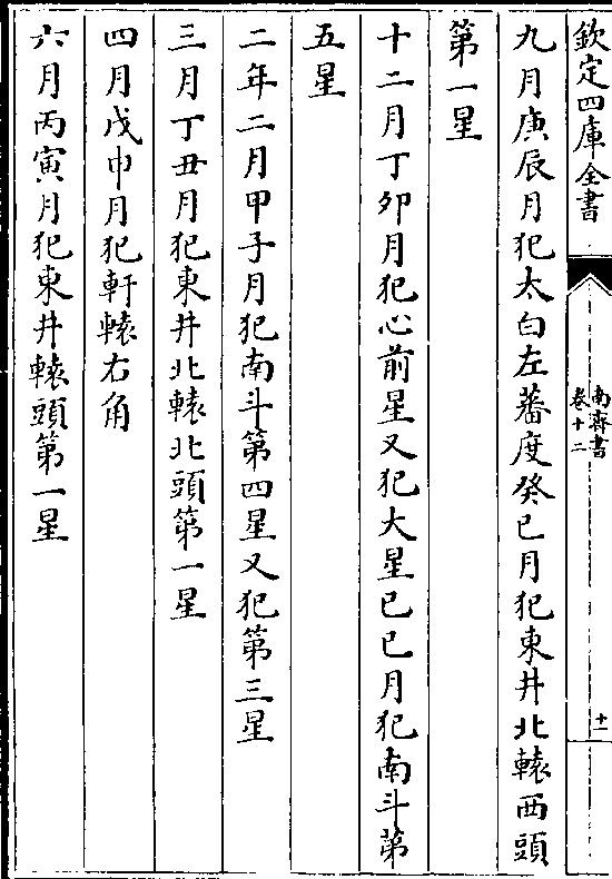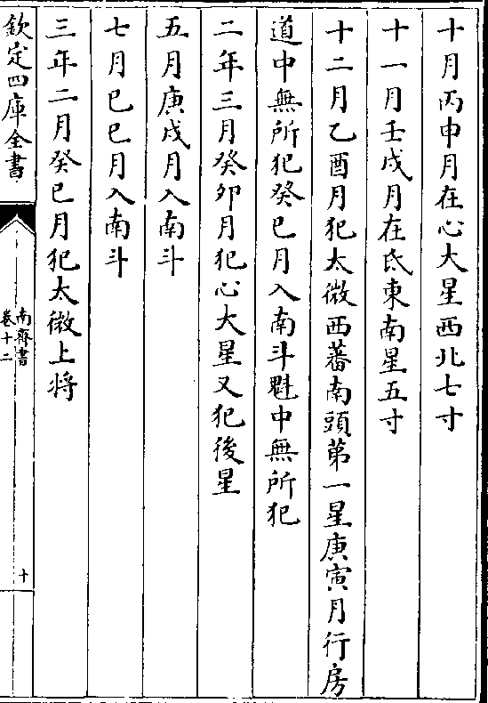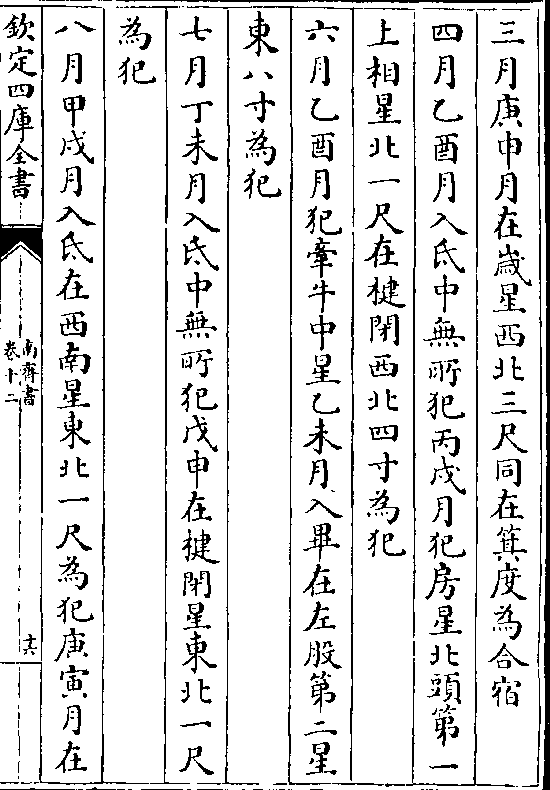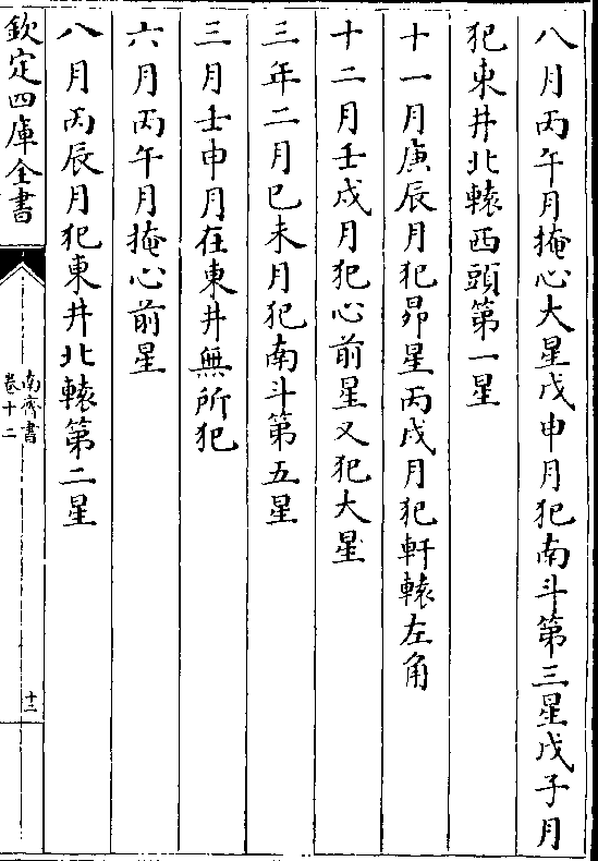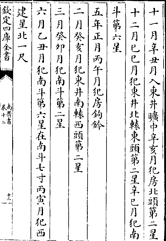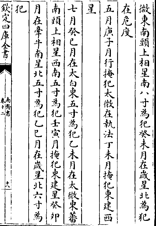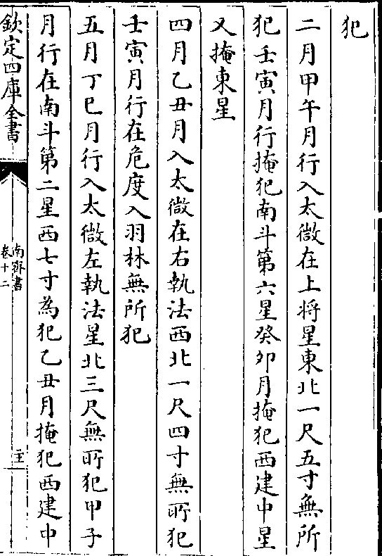 犯壬寅月行掩犯南斗第六星癸卯月掩犯西建中星
