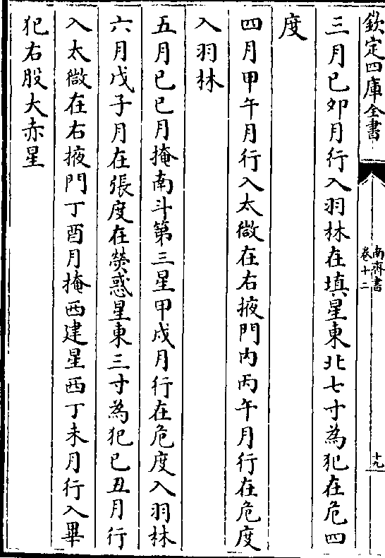 五月己巳月掩南斗第三星甲戌月行在危度入羽林