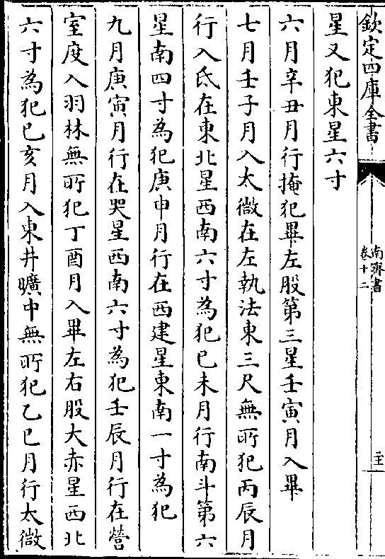 星又犯东星六寸六月辛丑月行掩犯毕左股第三星壬寅月入毕