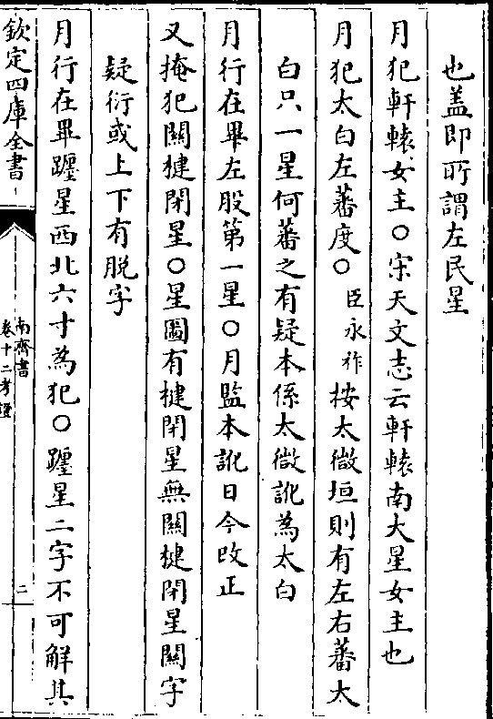 也盖即所谓左民星月犯轩辕女主○宋天文志云轩辕南大星女主也