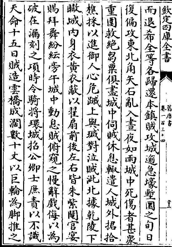 浑瑊传是月贼自丁未至辛未四面攻城昼夜矢石不