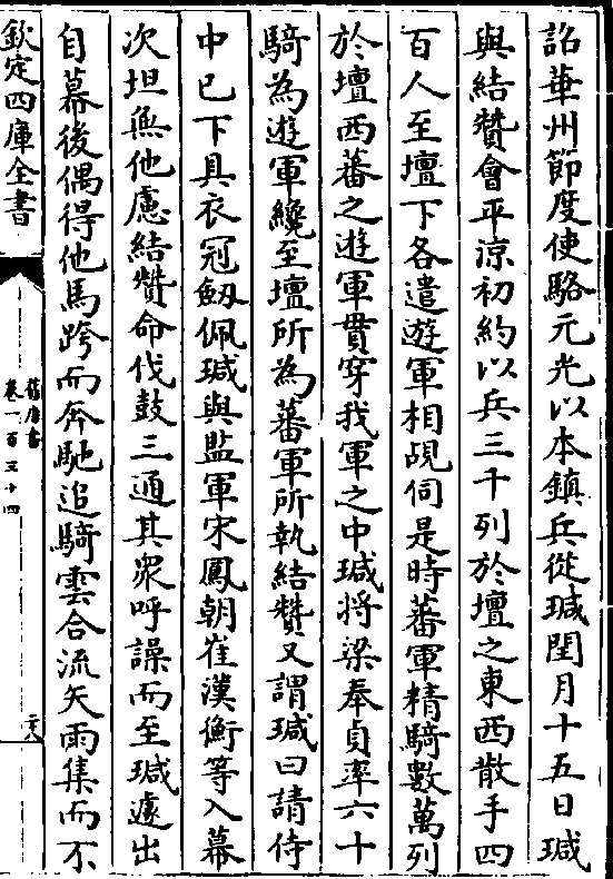 百人至坛下各遣游军相觇伺是时蕃军精骑数万列