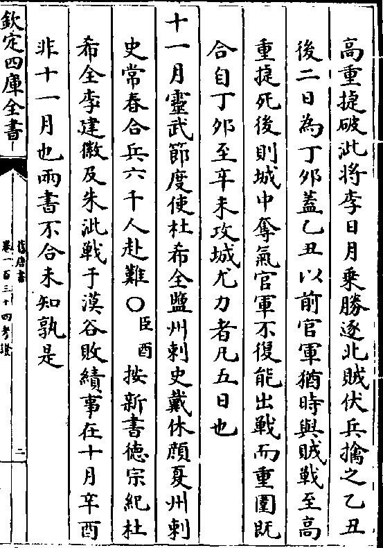 高重捷破泚将李日月乘胜逐北贼伏兵擒之乙丑后二日为丁卯盖乙丑以前官军犹时与贼战至高
