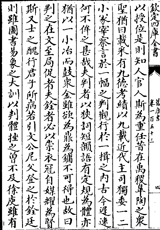 圣犹曰载采有九德考绩以九载近代主司独委一二小冢宰察言于一幅之判观行于一揖之内古今迟速