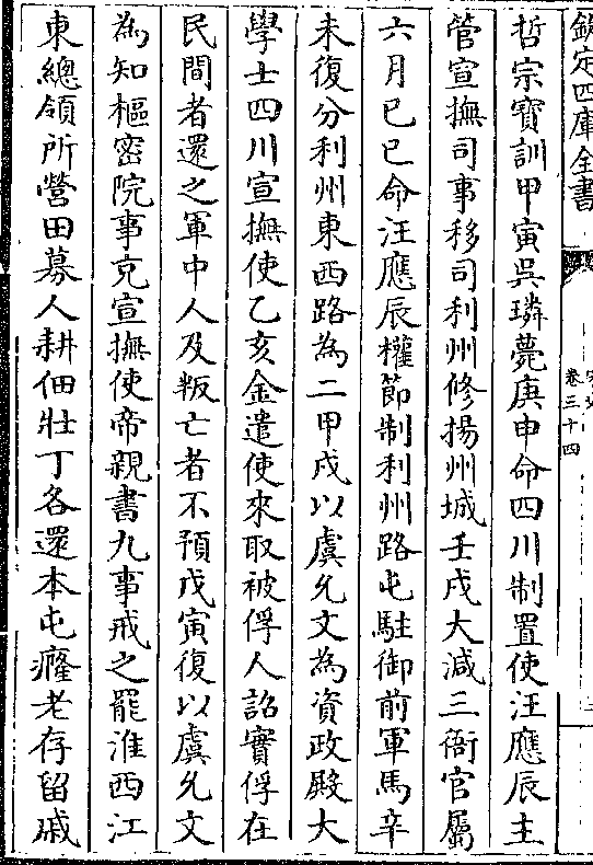 哲宗宝训甲寅吴璘薨庚申命四川制置使汪应辰主