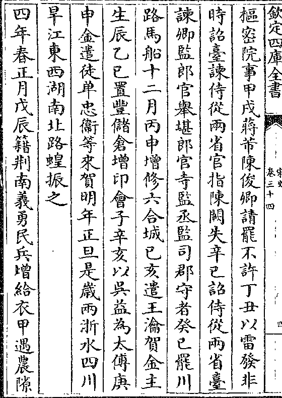 四年春正月戊辰籍荆南义勇民兵增给衣甲遇农隙